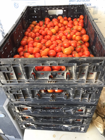We are harvesting a bumper crop of tomatoes, over 400 pounds per week. If you or any friends are interested in making and/or canning some tasty tomato sauce, please let us know and we will sell you tomatoes in bulk for a great price.